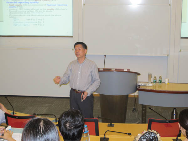 6月17日下午,应审计与成人卡通 邀请,美国肯塔基大学商学院谢宏副教授来成人卡通 做了题为“审计实证研究国际前沿概览”的学术讲座。讲座由审计与成人卡通 副院长章之旺主持,审计与成人卡通 院长施平、副院长殷俊明及审计与成人卡通 的全体教师和部分研究生聆听了此次讲座。