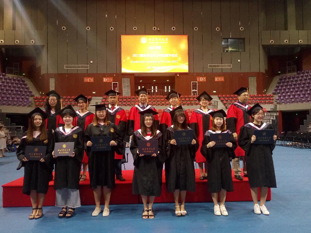 在悠扬的音乐声中,学院学位委员会的导师代表为毕业生们授予学位。毕业生身着学士服依次上场,鞠躬、握手,导师拨正学士帽上那缕流苏,毕业生双手捧过学位证书,转身、合影。在收获的喜悦、诚挚的祝福声中,成人卡通