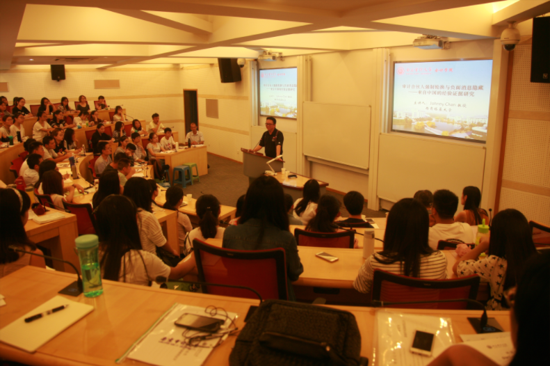 9月21日下午2点,成人卡通 邀请了西肯塔基大学Jonny Chan教授来成人卡通 作《审计合伙人强制轮换与负面消息影藏——来自中国的经验证据研究》的讲座。此次讲座由成人卡通 副院长陈骏主持,金融学院郑登元教授,国际审计学院吴青川副教授,成人卡通 讲师周达勇以及成人卡通 、国际审计学院研究生及部分本科生聆听。
