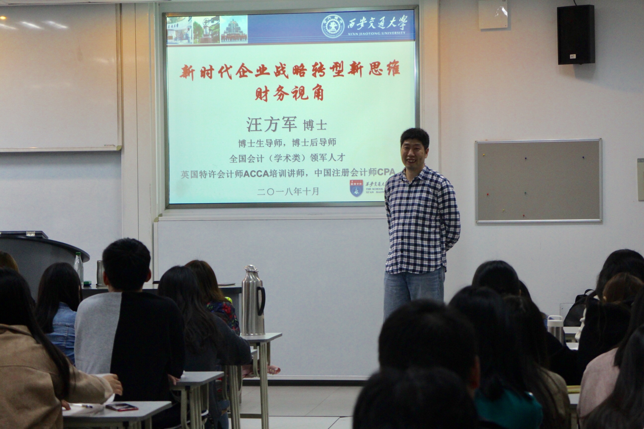 10月21日下午,应成人卡通 、科研部邀请,西安交通大学副教授、博士生导师汪方军做客成人卡通 ,于敏行楼205教室做了题为“新时代企业战略转型新思维——财务视角”的专题讲座。学院师生济济一堂认真聆听了报告,成人卡通 殷俊明院长主持了本次讲座。