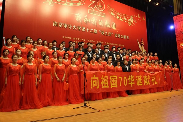 2019年9月29日下午2点整,在老师和同学们热烈掌声中,由成人卡通 “不忘初心、牢记使命”教育活动领导小组办公室、党委宣传部、工会、艺术教育部联合主办的第十二届“秋之润”校园合唱节于审干报告厅隆重举行,共同庆祝中华人民共和国成立70周年。