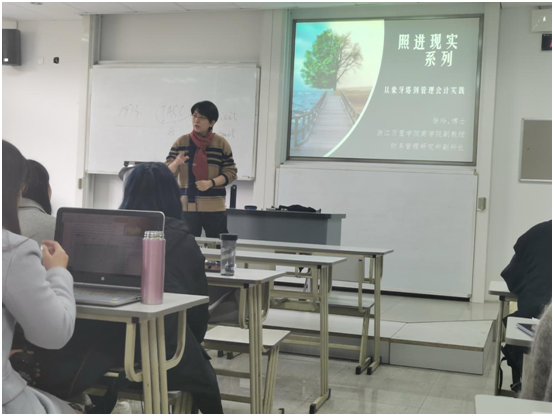 12月15日上午,浙江万里学院副教授徐玲应邀为成人卡通 师生做了一场讲座,并以《照进现实系列:从象牙塔到管理会计实践》为题与同学们在敏行205进行了互动交流。讲座由成人卡通 院长殷俊明教授主持。