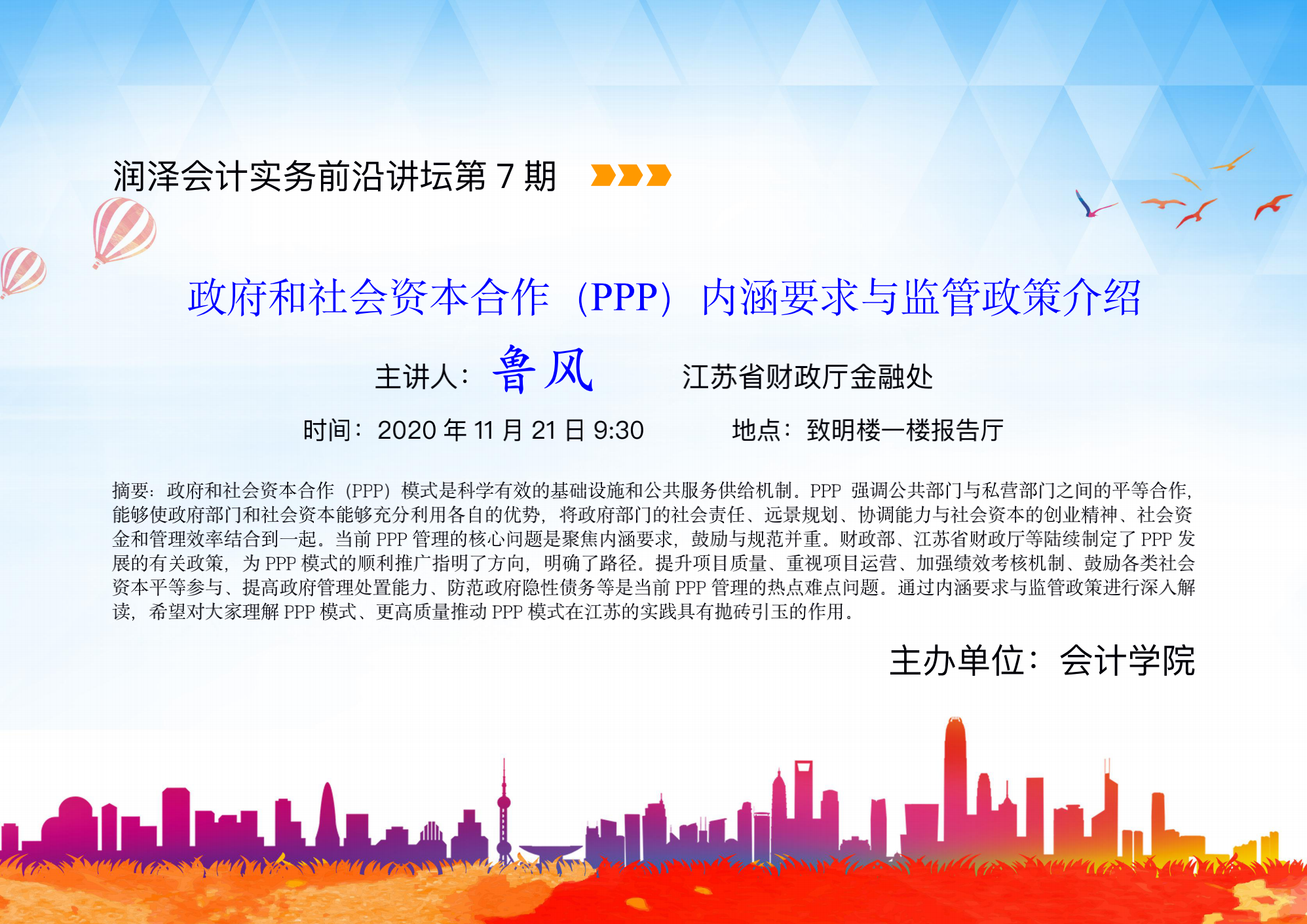 润泽会计实务前沿讲坛第7期:鲁风-政府和社会资本合作(PPP)内涵要求与监管政策介绍