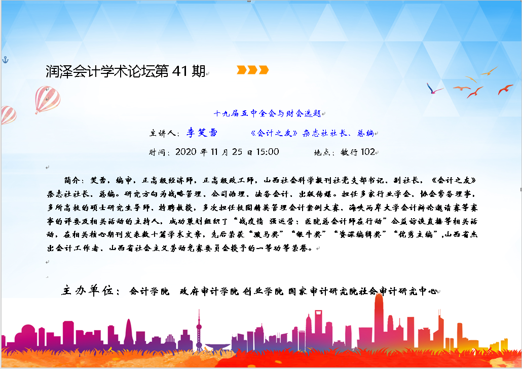 润泽会计学术论坛第41期:李笑雪--十九届五中全会与财会选题
