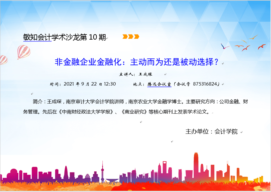 敏知会计学术沙龙第10期:王成琛-非金融企业金融化:主动而为还是被动选择?