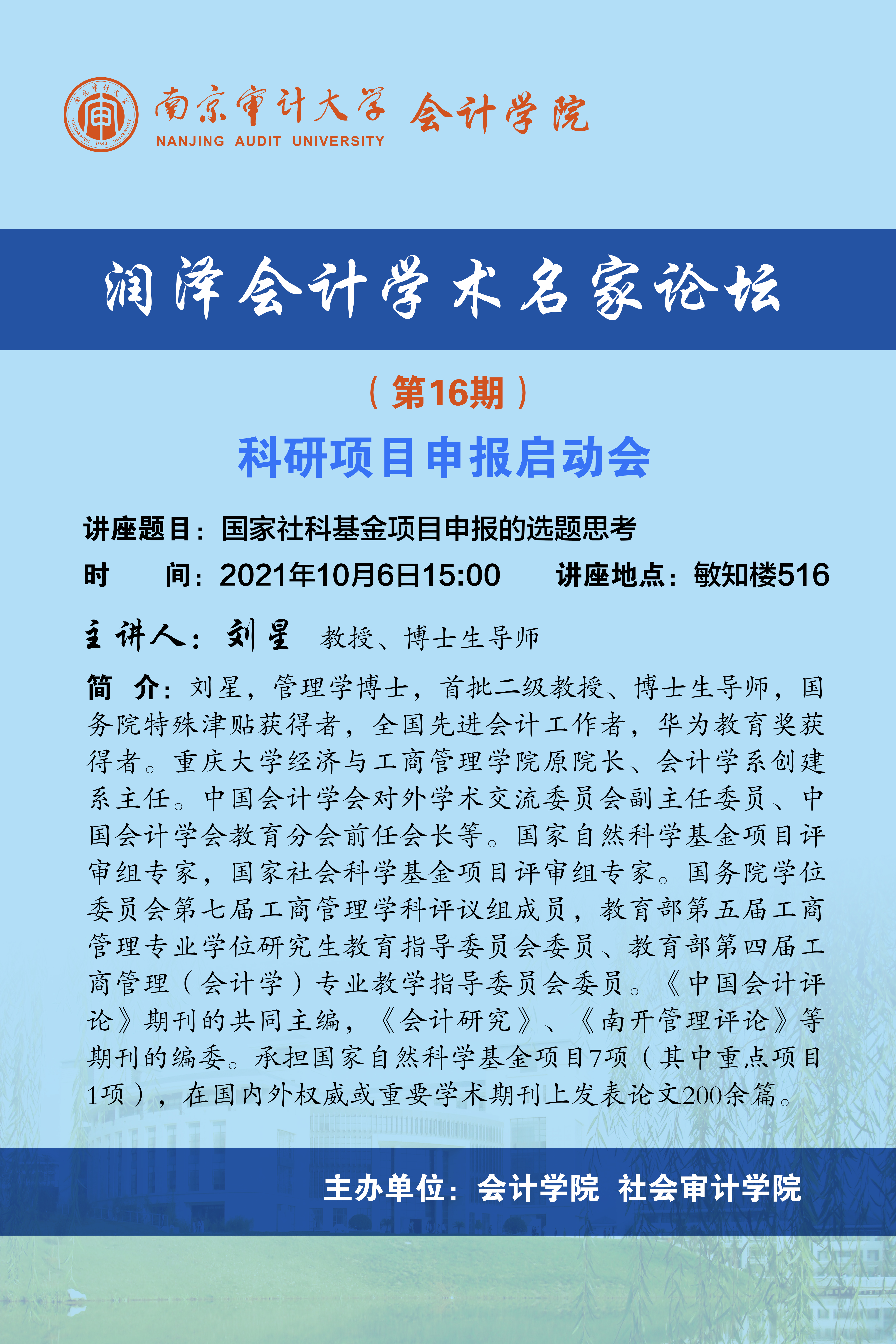 润泽会计学术名家论坛第16期:刘星-国家社科基金项目申报的选题思考