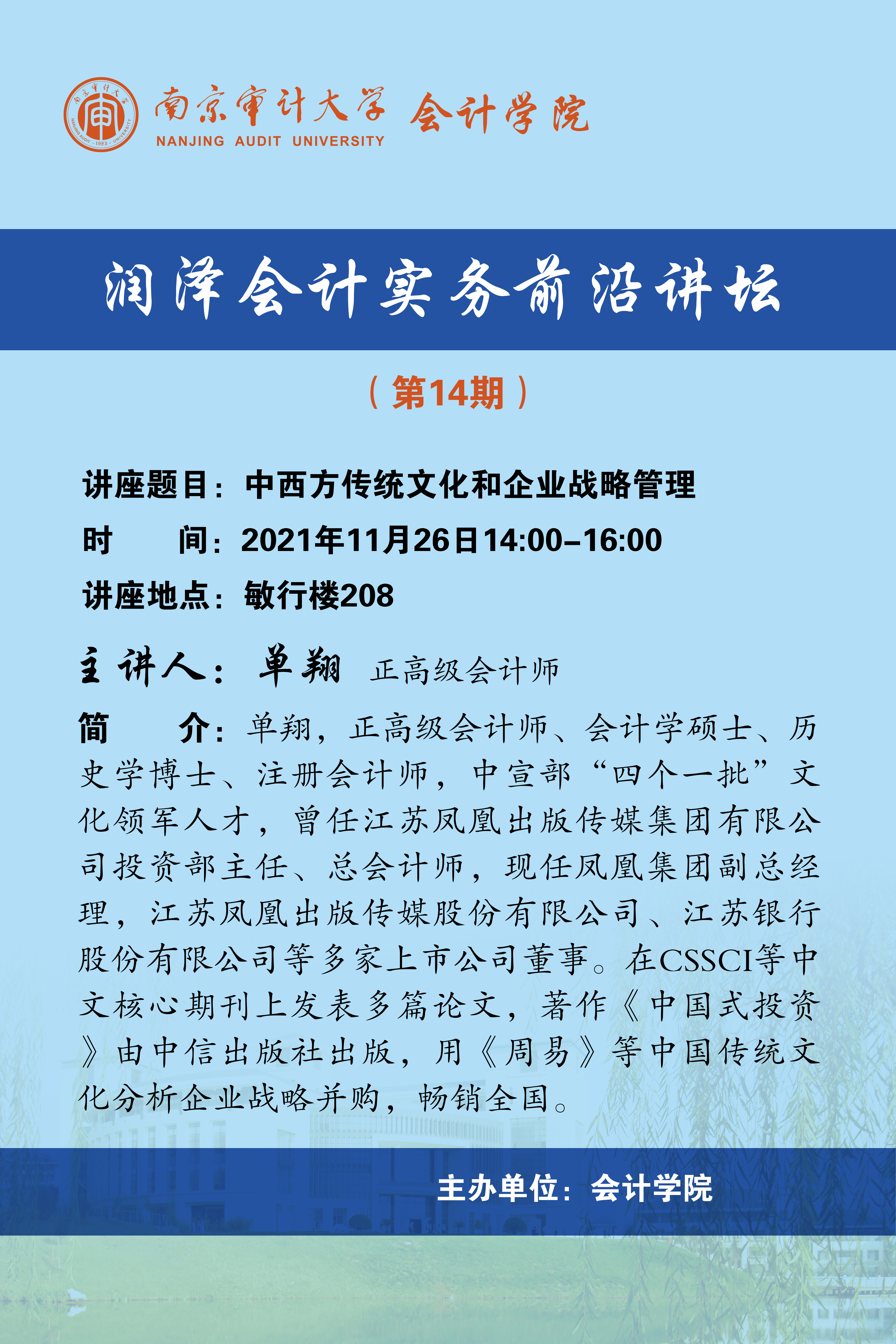 润泽会计实务前沿讲坛第14期:单翔-中西方传统文化和企业战略管理