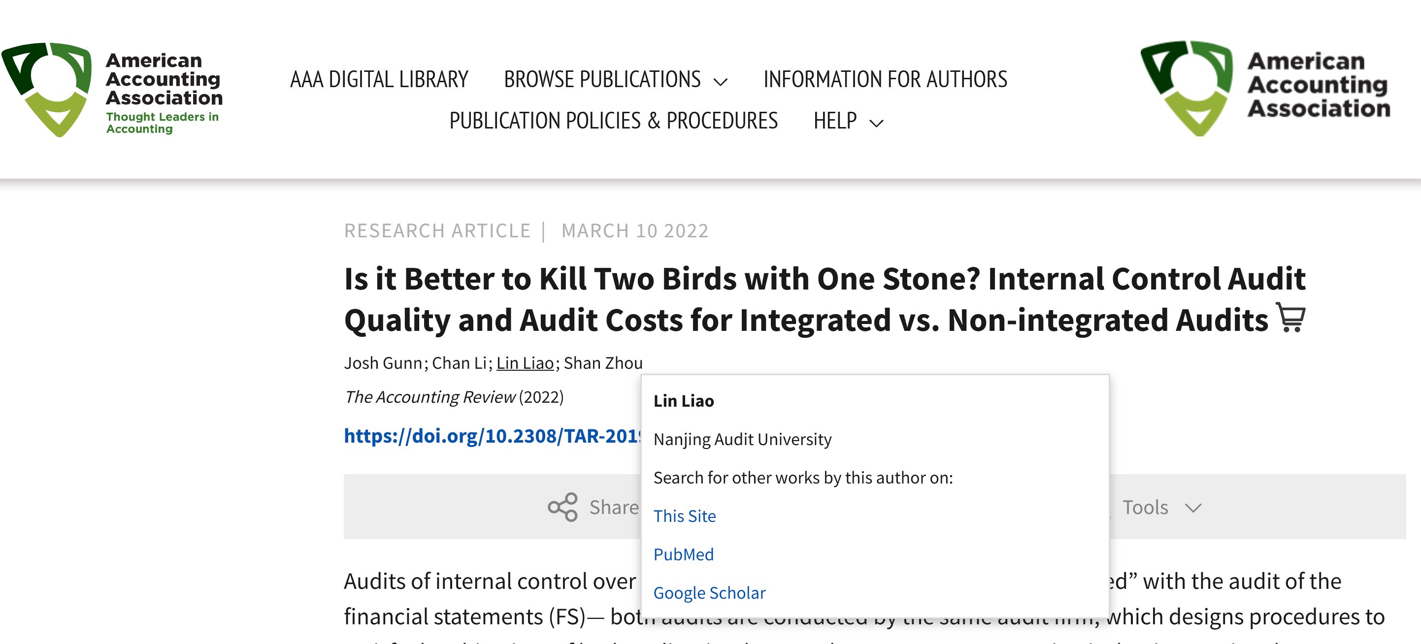 廖林副教授的合作论文“Is it Better to Kill Two Birds with One Stone? Internal Control Audit Quality and Audit Costs for Integrated vs. Non-integrated Audits”被会计学顶刊《The Accounting Review》接收。该成果是成人卡通