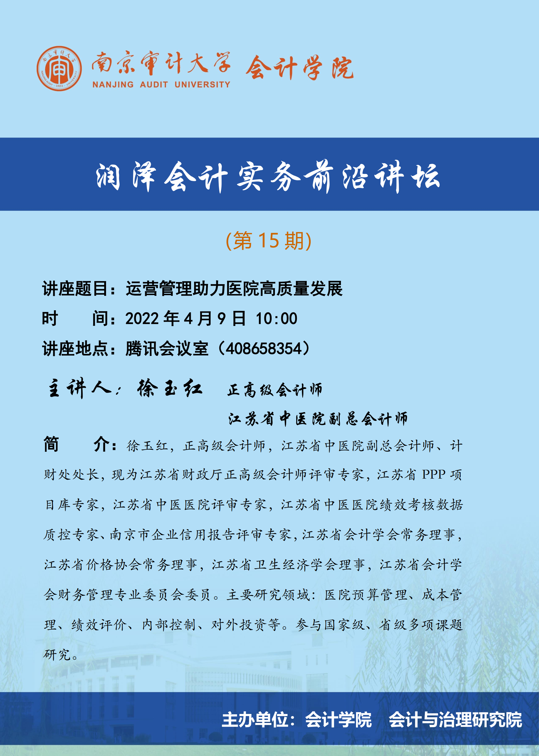 润泽会计实务前沿讲坛第15期:徐玉红-运营管理助力医院高质量发展
