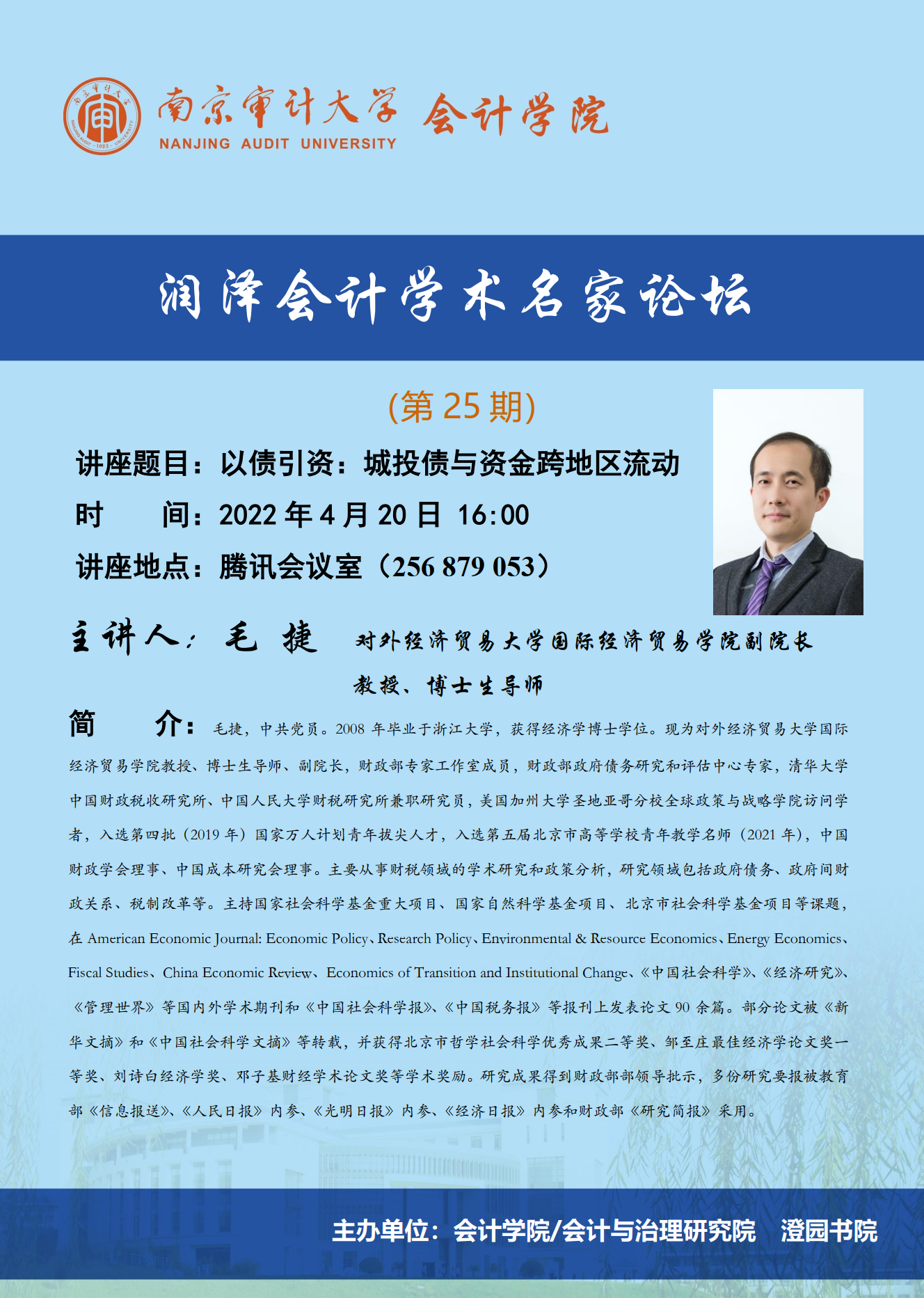 润泽会计学术名家论坛第25期:毛捷-以债引资:城投债与资金跨地区流动