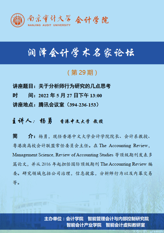 润泽会计学术名家论坛第29期:杨勇 关于分析师行为研究的几点思考