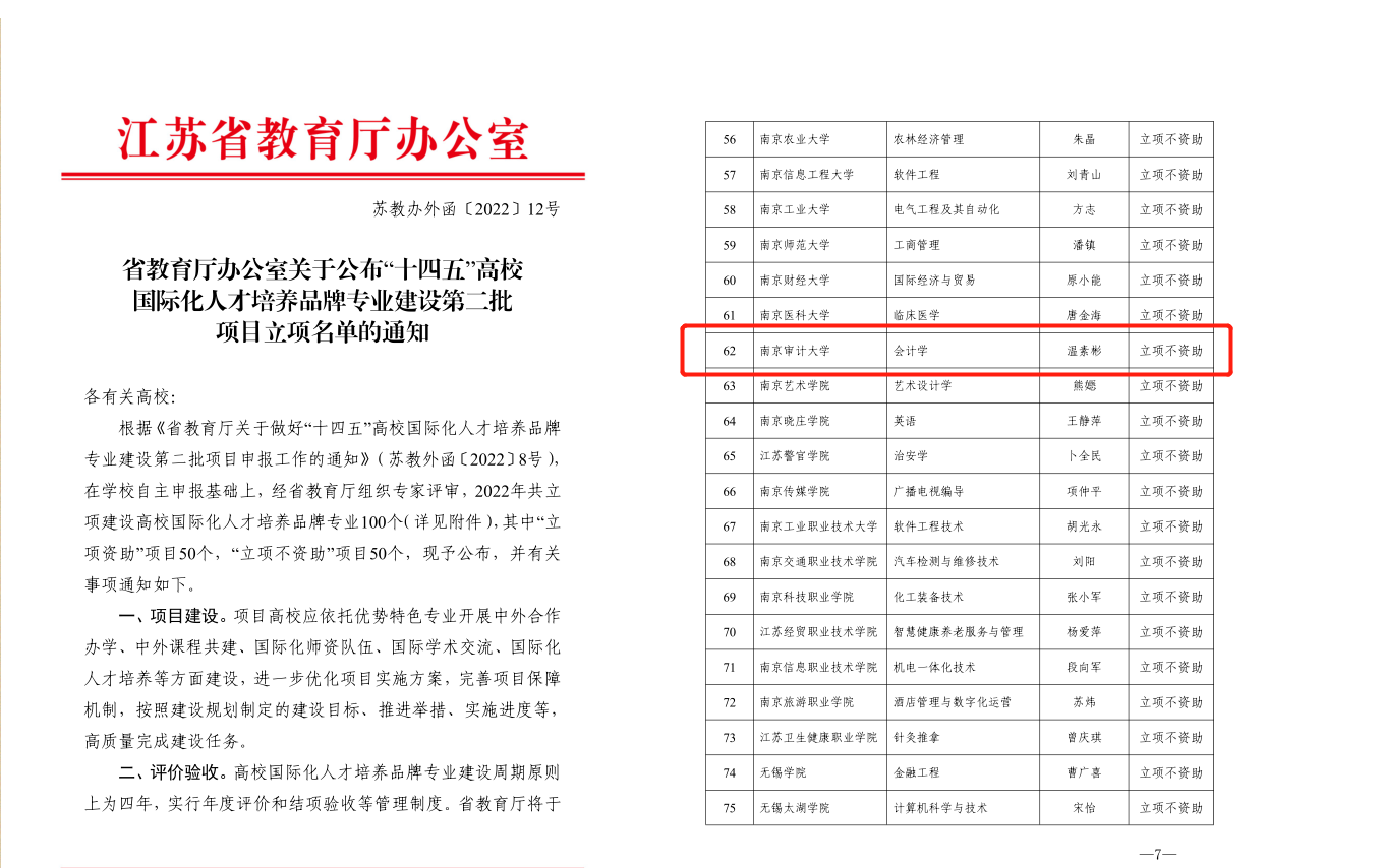 近日,江苏省教育厅公布了《“十四五”高校国际化人才培养品牌专业建设第二批项目立项名单》(苏教办外函〔2022〕12号),成人卡通 会计学本科专业成功入选。