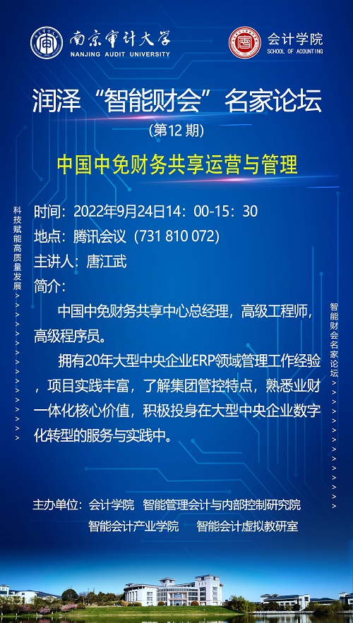 润泽“智能财会”名家论坛第12期:唐江武-中国中免财务共享运营与管理