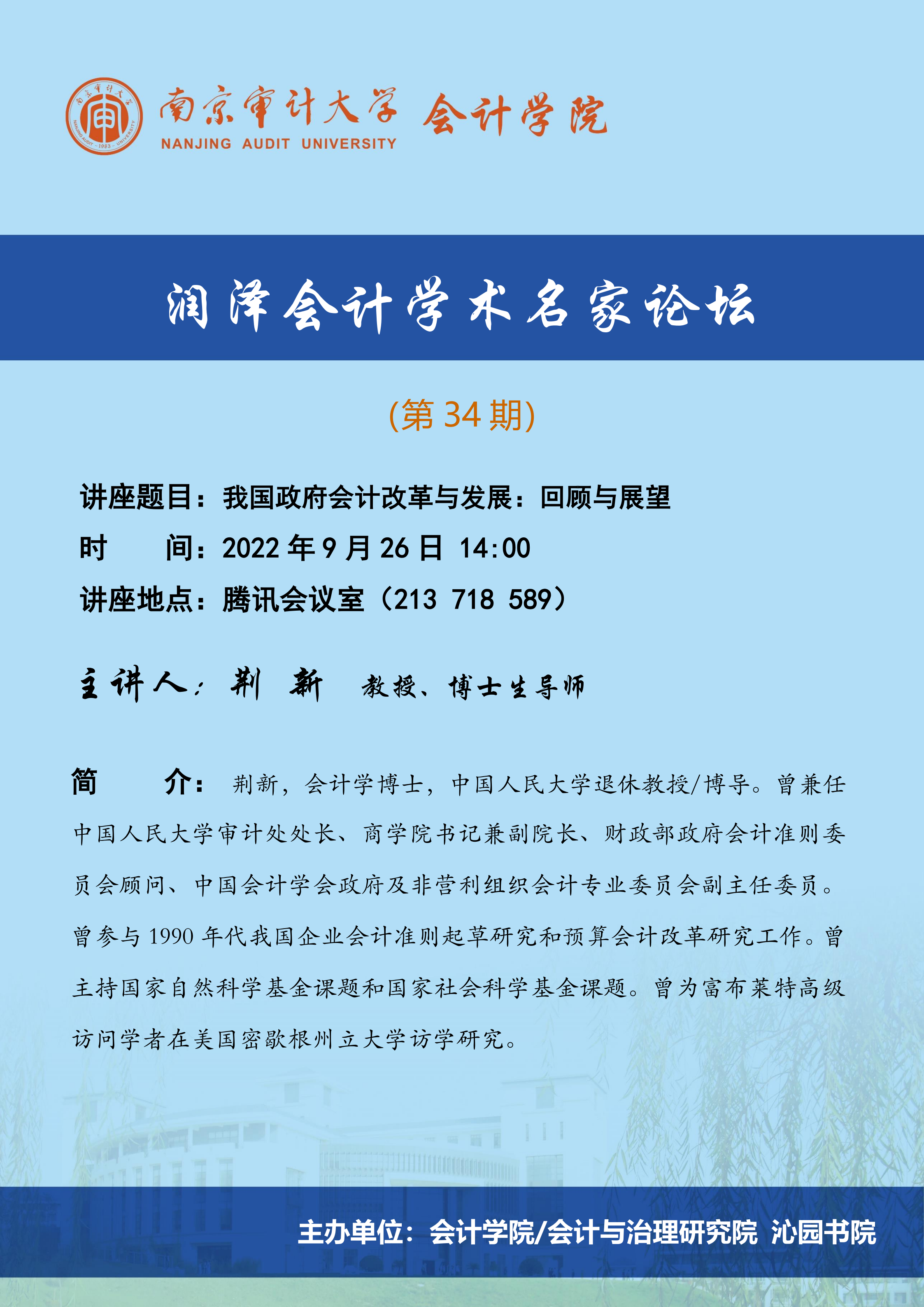 润泽会计学术名家论坛第34期:荆新-我国政府会计改革与发展:回顾与展望