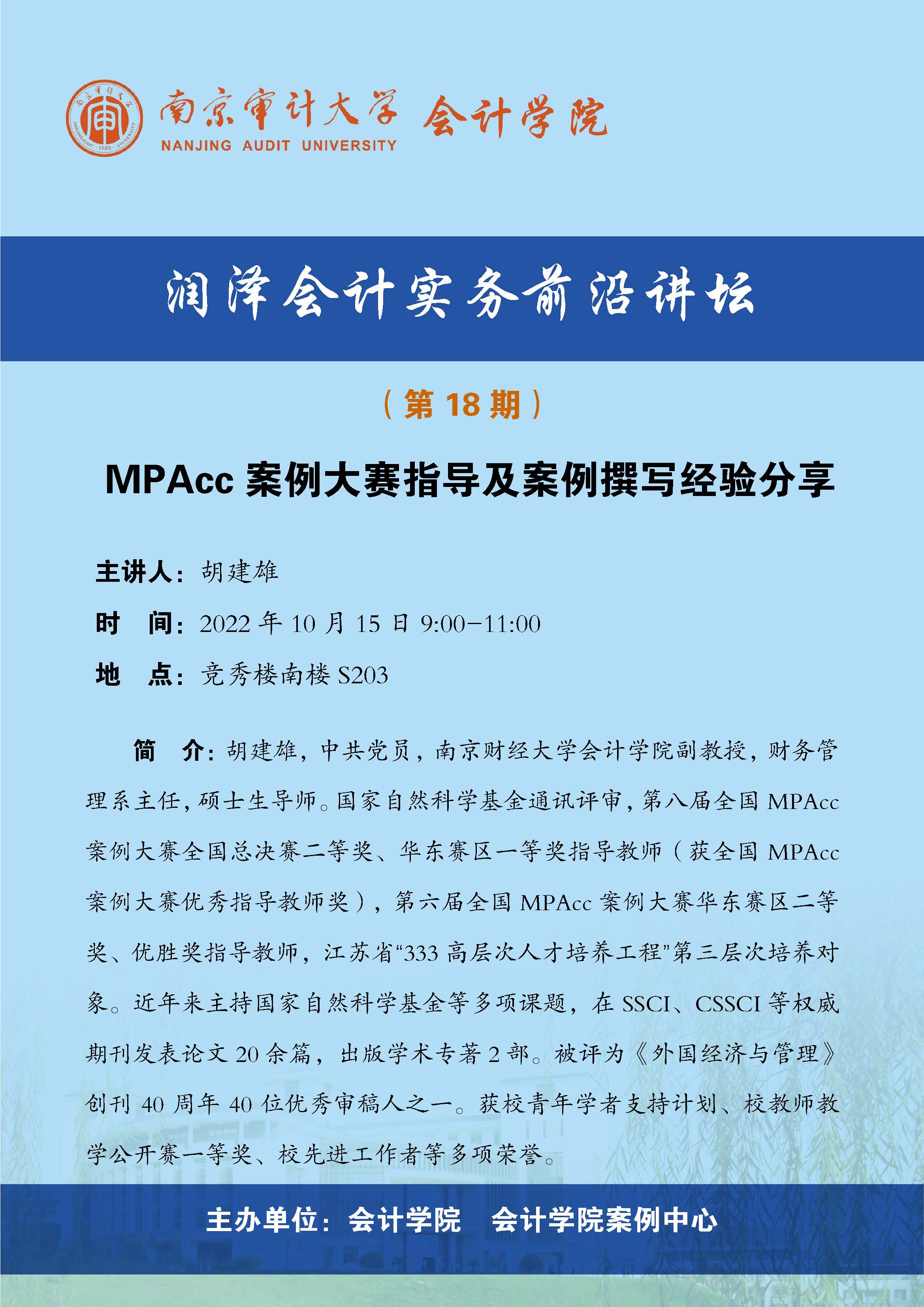 润泽会计实务前沿讲坛第18期:胡建雄-MPAcc案例大赛指导及案例撰写经验分享