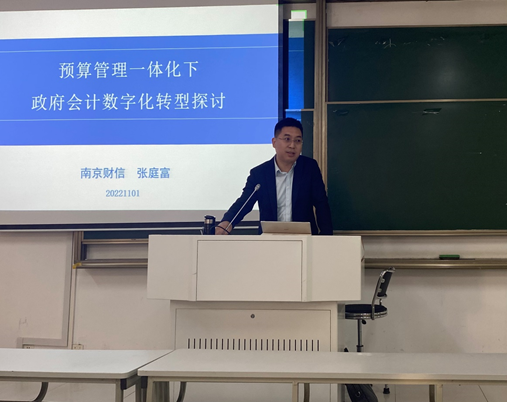 2022年11月1日上午,成人卡通 主办的润泽会计校友论坛(第二期)如约举行。南京财信网络科技有限公司总经理张庭富应邀为成人卡通 师生做了以“预算管理一体化下政府会计数字化转型探讨”为题的特色讲座,此次讲座由成人卡通 副院长潘俊教授主持。