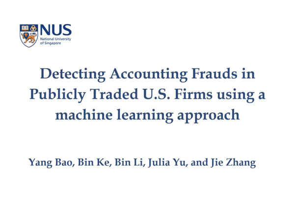 12月18日的最后一场讲座中,柯滨介绍了Detecting accounting fraud using machine learning研究。此课题的目的在于为了在样本中运用更好的模型进行财务造假的预测。在预测过程中,如何使用数据成为关键。对比机器学习和人类分析,人类分析更倾向于具有经济含义的指标,而这些指标是由原始数据积累而成;机器学习不仅能够进行指标分析还能够对大量的原始数据进行处理。机器模型可以直接使用原始数据,而原始数据庞大,如何去除杂音,减少模型数据的伤害,如何选择数据是至关重要的。