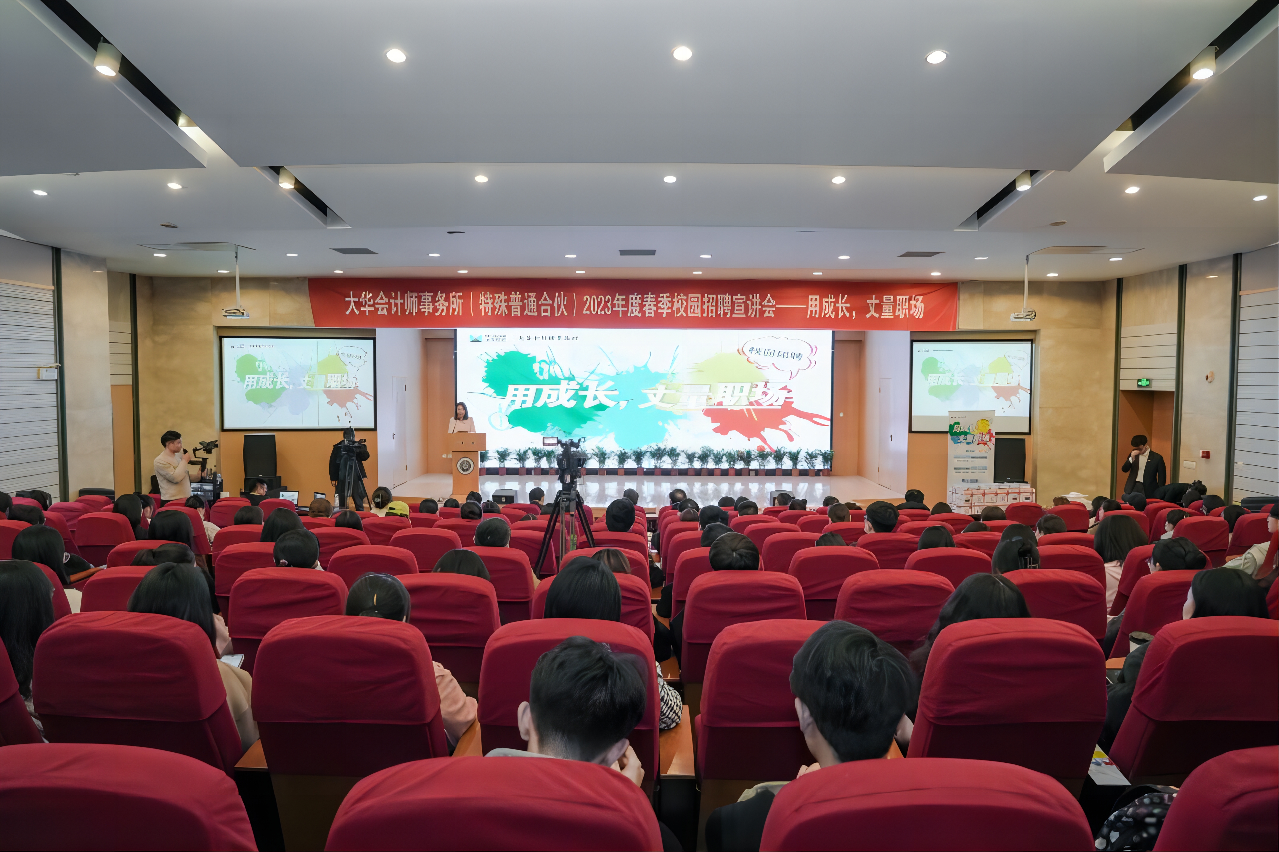 会上,在大家的共同见证下,大华会计师事务所授予成人卡通 “英才计划院校——英才大本营”荣誉牌匾;同学们还围绕专业实习和就业需求,与大华会计师事务所的招聘团队进行了热烈的互动交流。
