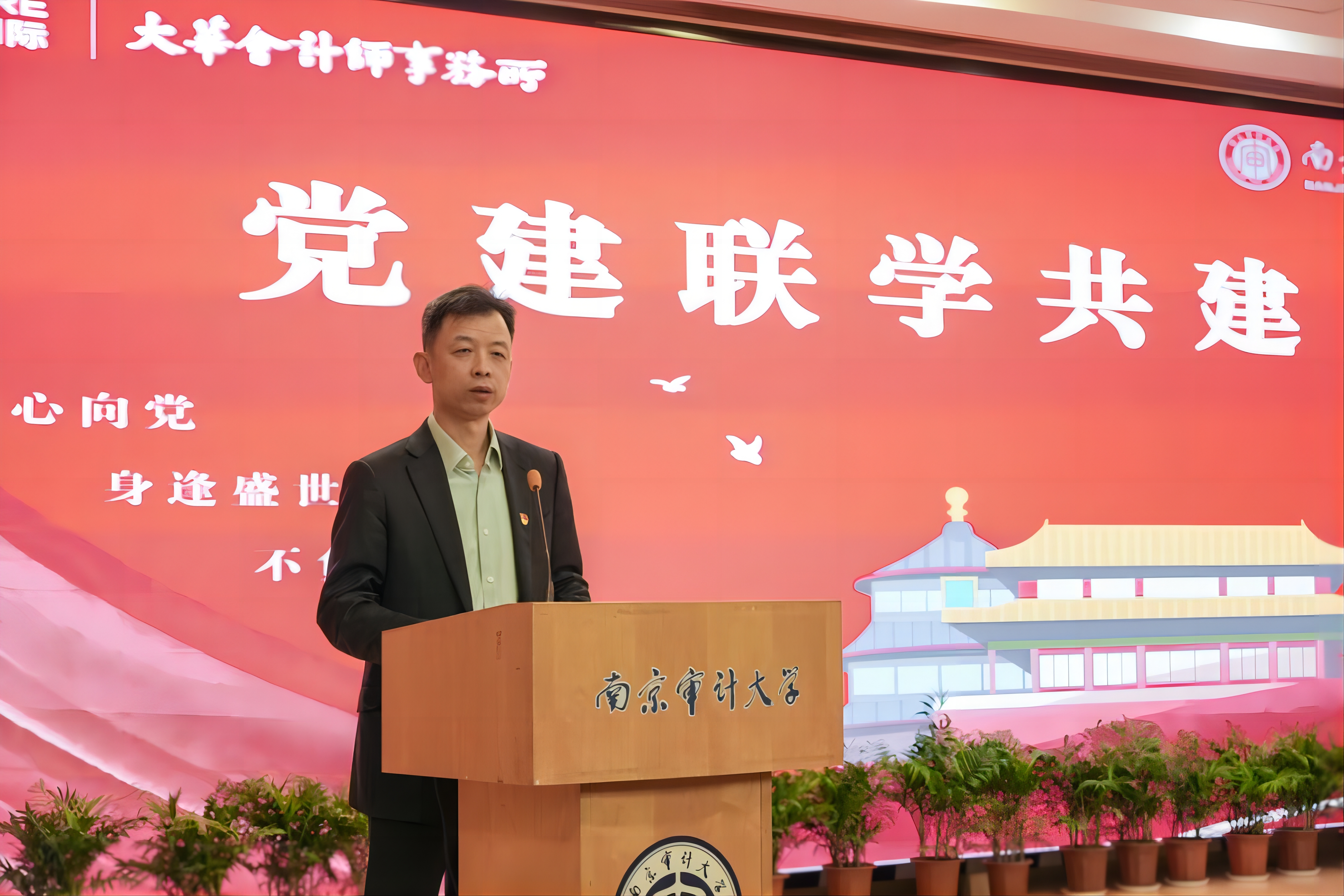 温素彬首先代表成人卡通 对大华会计师事务所长期以来对学院专业发展、实习实践就业等给予的大力支持表示衷心的感谢;其次,结合十四五的“更为安全”的发展新目标,对南审学子积极投入注册会计师行业,成为守护国家经济安全的财会卫士提出殷切希望;再次,就成人卡通 和大华会计师事务所深化建设产教融合机制,培养输送实务型人才培养提出展望;最后,将美好的祝愿分别送给大华会计师事务所和南审学子。