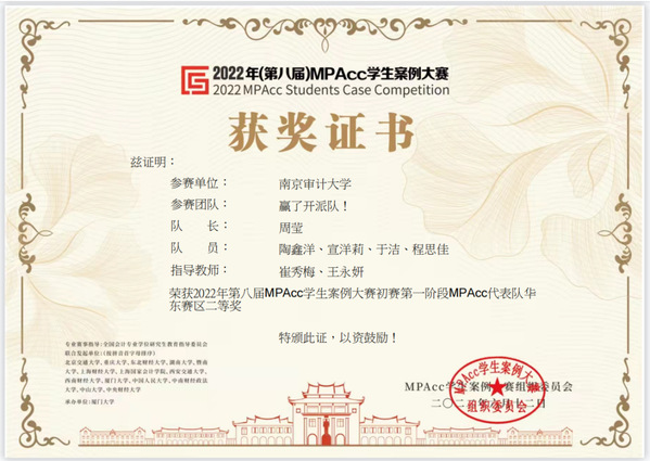 成人卡通 长期高度重视会计案例建设相关工作,积极开发会计案例入选全国MPAcc案例库和积极参与案例大赛,提高成人卡通 在全国的知名度。成人卡通 研究生团队在2019年第六届MPAcc学生案例大赛获得初赛优胜奖,取得了零的突破,随后在2022年第八届MPAcc学生案例大赛获得第一阶段华东赛区二等奖。今年再接再厉,在第九届MPAcc学生案例大赛进入华东赛区十强。