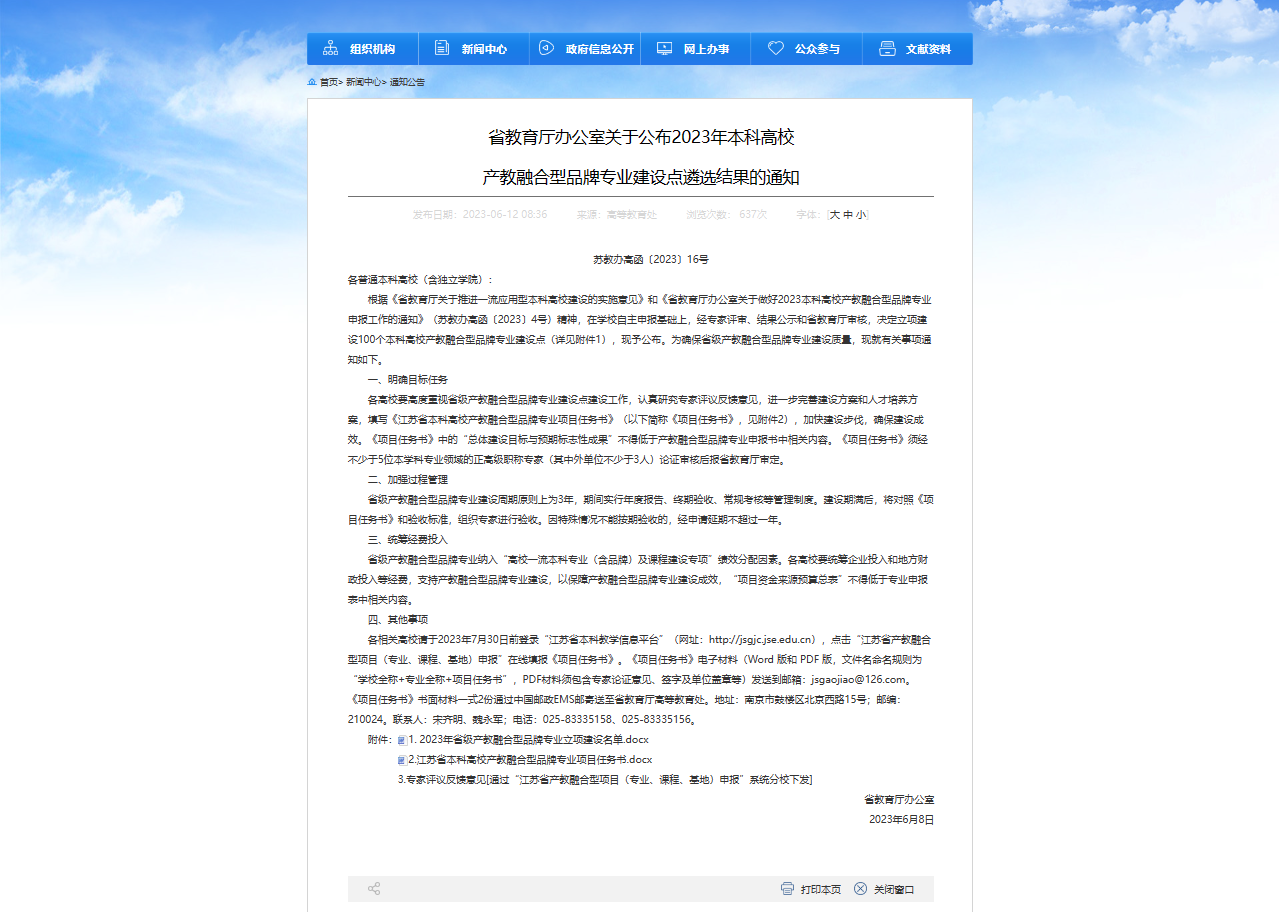 近日,江苏省教育厅办公室发布了《关于公布 2023 年本科高校产教融合型品牌专业建设点遴选结果的通知》(苏教办高函〔2023〕16号),成人卡通 会计学专业成功入选。