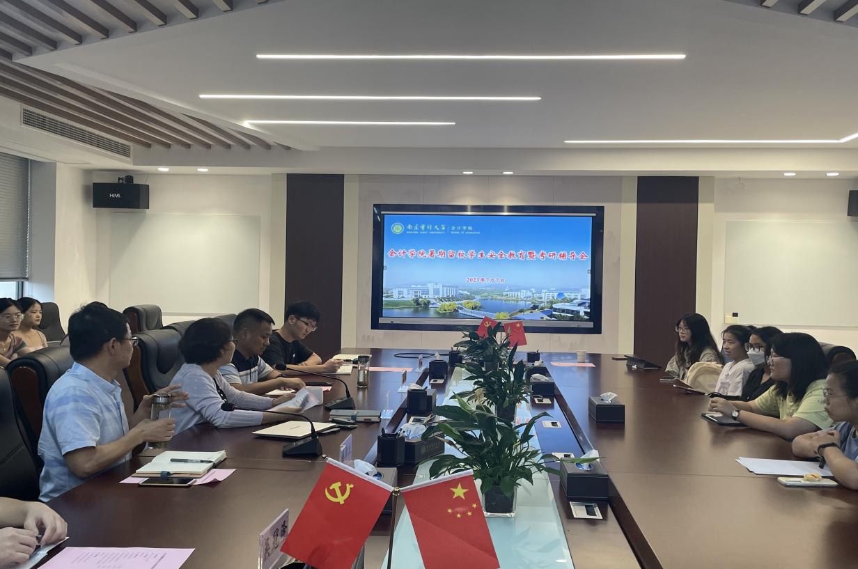 为进一步促进学院的学风建设,充分调动学生的考研积极性,同时帮助学生进一步提升安全意识,2023年7月7日下午,成人卡通 在敏知楼516召开暑期留校学生安全教育暨考研动员会。成人卡通 党委书记吴春梅、党委副书记兼副院长潘俊以及留校学生代表60余人参加会议。会议还邀请了2022级会计学硕班学习委员王吉森、会计专硕3班团支书兼研究生第一党支部副书记吴冠泽两位同学为考研学生作经验交流。副院长黄中生主持会议。