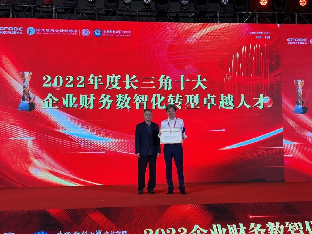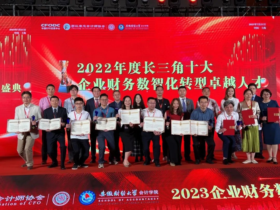 陈汉文教授在颁奖阶段作为颁奖嘉宾,向圆通速递高级财务总监文国祥先生、麦克韦尔中国集团副总裁兼财务总监毕永亮先生等颁发了“2022年度长三角十大企业财务数智化转型卓越人才”奖项;向上海振华重工(集团)执行总裁、财务总监朱晓怀先生等颁发了“长三角十大企业财务管理卓越人才”奖项。