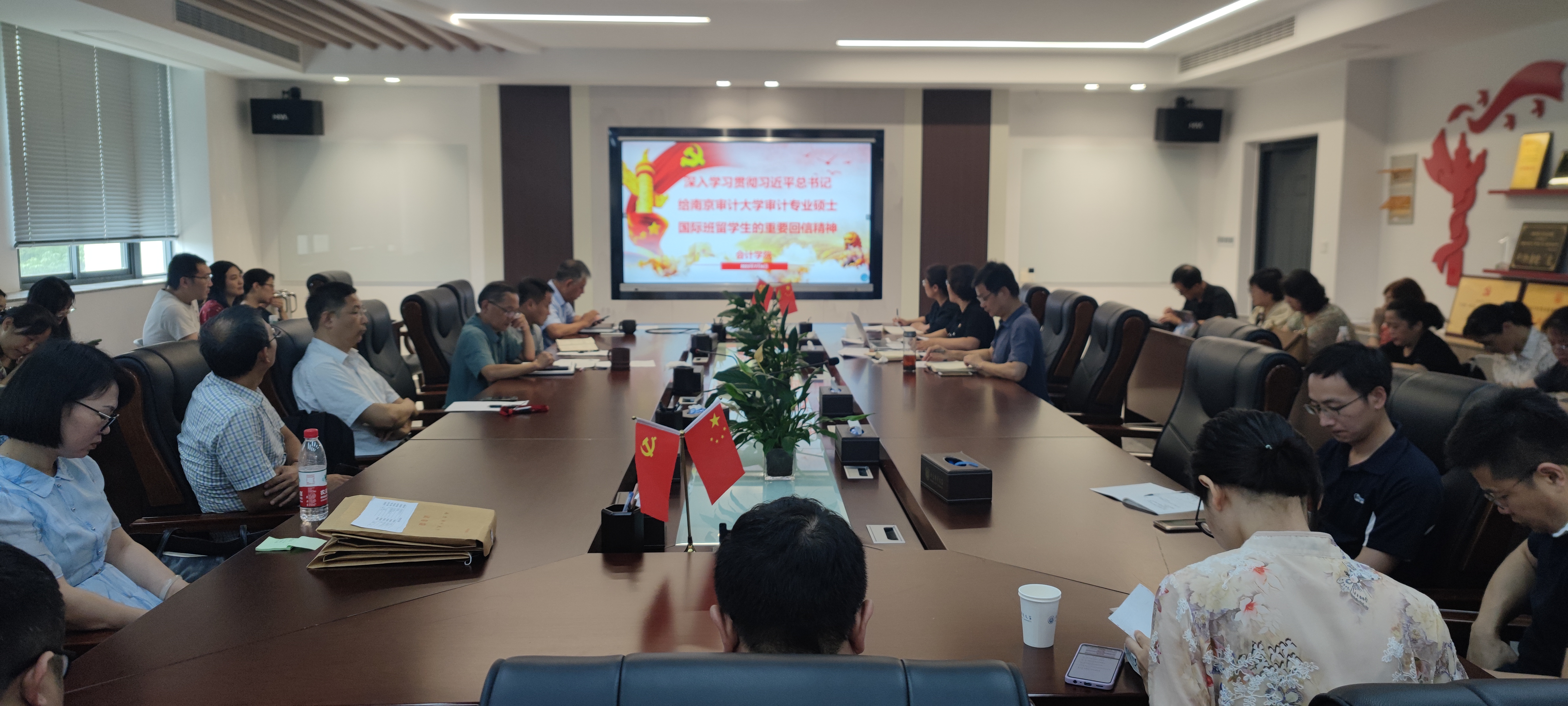 7月6日上午,成人卡通 在敏知楼516召开员工大会,专题学习贯彻习近平总书记给成人卡通 审计专业硕士国际班留学生的重要回信精神。学院班子成员、全体教职工参加,成人卡通 院长温素彬主持会议。