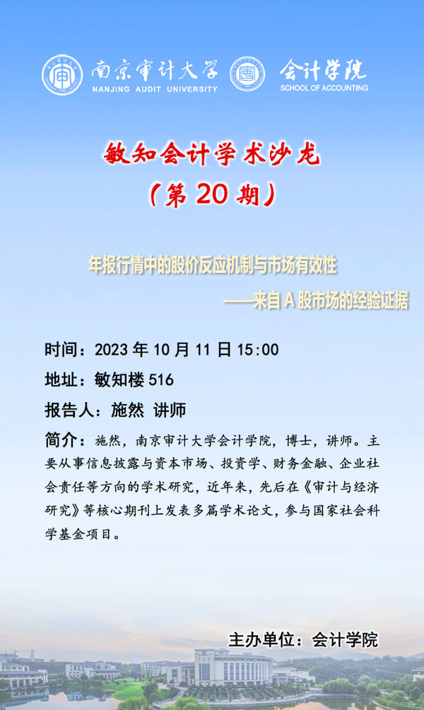 敏知会计学术沙龙(第20期):施然——年报行情中的股价反应机制与市场有效性——来自 A 股市场的经验证据