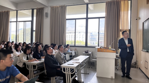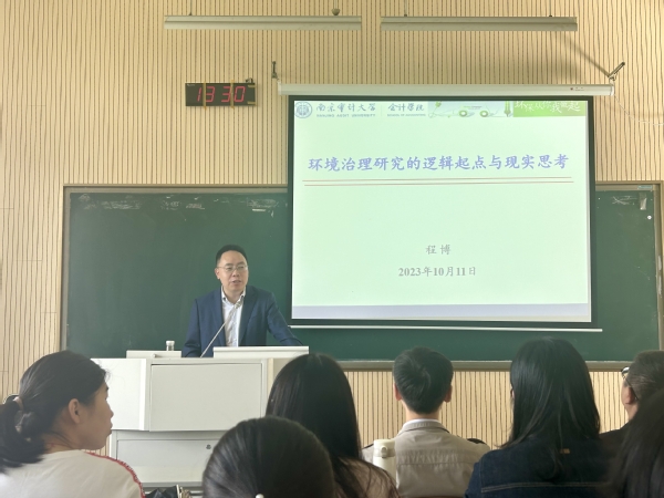 程博旁征博引,从党的二十大报告、到现代中国环境治理的杰出成果、再到领域内研究专家的理论结晶、最后到环境法律法规的从严制定,为参加讲堂的青年教师和同学们提供了环境治理研究多个可能的逻辑出发点、引发大家深思。