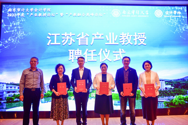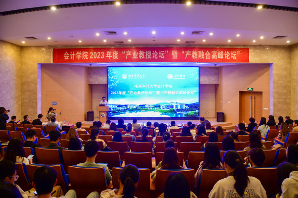 2023年11月4日,成人卡通 于敏达学报主办2023年度“产业教授论坛”暨“产教融合高峰论坛”。来自江苏省人民医院(南京医科大学第一附属医院)、南京钢铁股份有限公司、江苏省环境科学研究院、徐州市审计局、天衡会计师事务所(特殊普通合伙)、中审众环会计师事务所(特殊普通合伙)、苏亚金诚会计师事务所(特殊普通合伙)、信永中和会计师事务所(特殊普通合伙)、立信会计师事务所(特殊普通合伙)、大华会计师事务所(特殊普通合伙)、公证天业会计师事务所(特殊普通合伙)、苏州新区高新技术产业股份有限公司、协鑫能源科技股份有限公司、南京中车浦镇城轨车辆有限责任公司、南京南审希地会计师事务所有限公司和南京扬子国资投资集团有限责任公司等企事业单位和政府机关的多位专家领导莅临现场。本次论坛包含了开幕式、产业教授论坛、产教融合圆桌论坛、高质量MPAcc人才培养研讨等议程,与会嘉宾们从产业教授、研究生工作站及实习基地负责人和研究生校外导师等角度进行了精彩的分享。论坛开幕式由成人卡通 党委副书记、副院长潘俊教授主持。