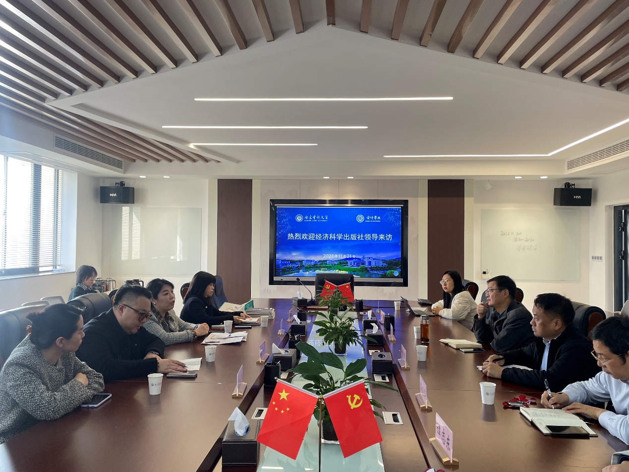 11月21日上午,经济科学出版社财税社杨洋、中财国培张宇博等一行到访成人卡通 ,双方围绕“教材与专著出版”等展开交流。成人卡通 副院长黄中生、副书记兼副院长潘俊以及部分教师参加会议。黄中生主持会议。