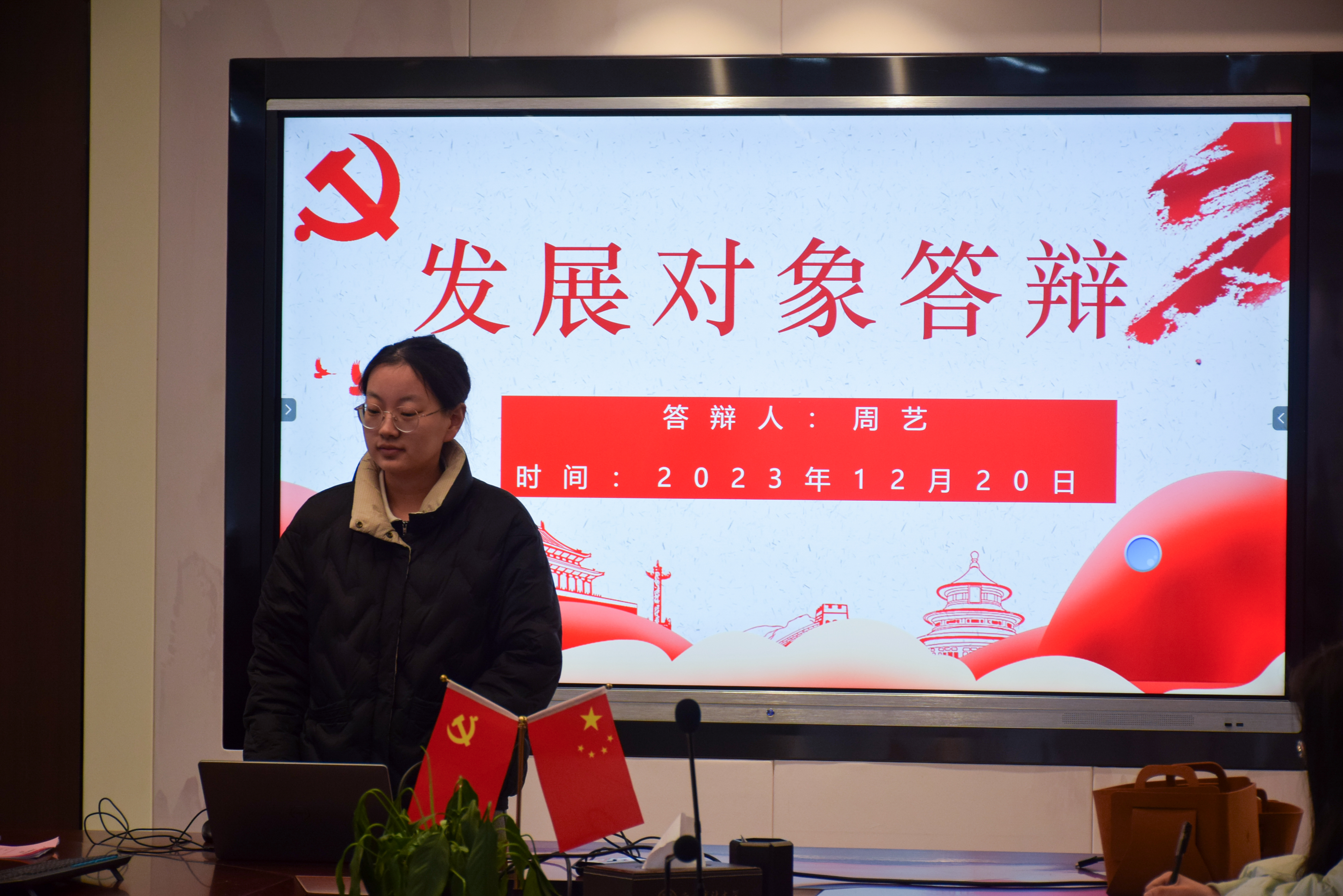 为深入贯彻党的二十大精神,进一步做好党员发展和教育工作,保证新发展的党员质量,12月20日下午,成人卡通 党委以线上线下相结合方式在敏知516召开2023年重点发展对象入党答辩会。党委书记吴春梅、学科与研究生办公室主任王莹、教务办孟雨晴、研究生辅导员肖艳、研究生第一党支部副书记吴冠泽、纪检委员文灿以及21位研究生重点发展对象参加答辩会,会议由吴冠泽主持。