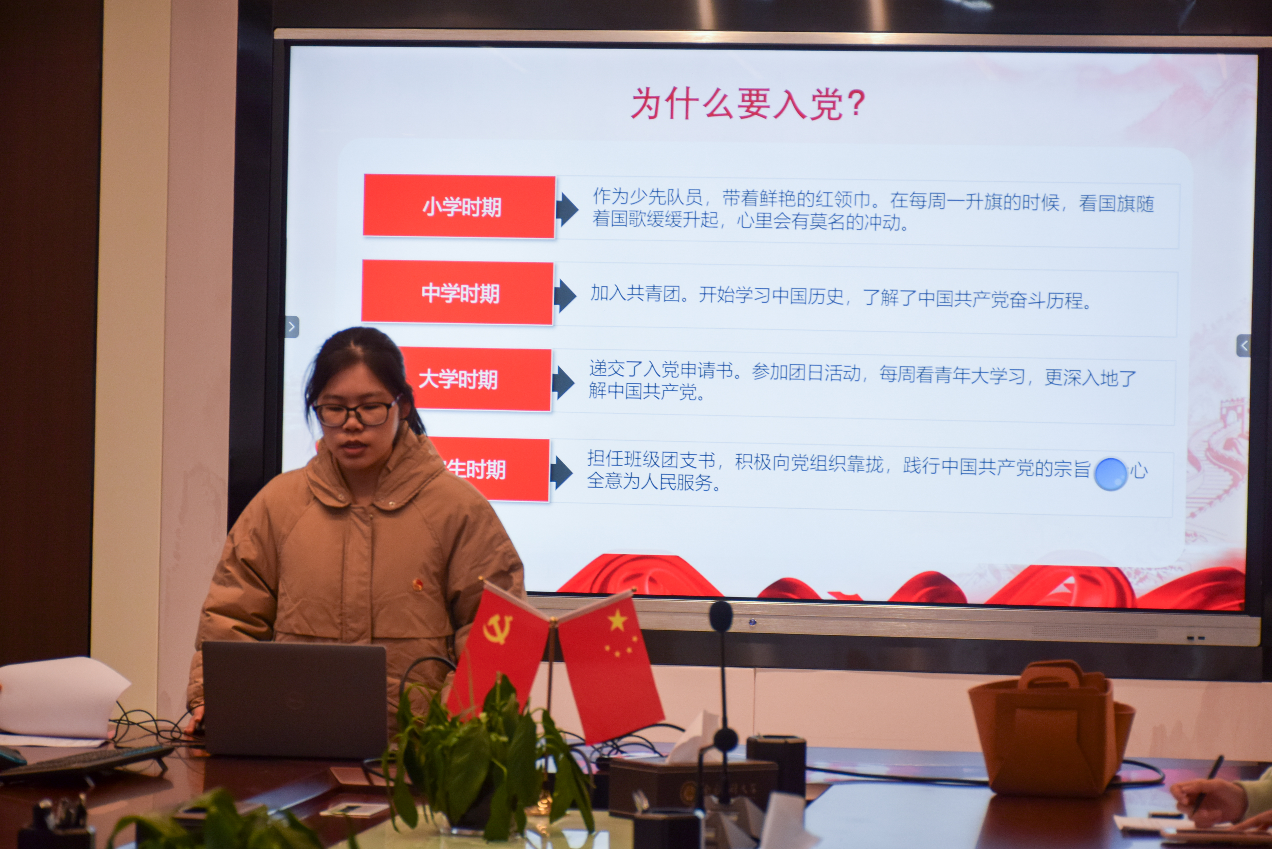 吴春梅首先表示入党是每个人在成长中不断精益求精、与时俱进、刻苦律己、锤炼自我的一个过程,当代每一位青年都应积极向党组织靠拢,树立共产主义远大理想。其次,新时代的中国青年必须担负起时代重任,希望大家通过本次答辩会进一步提升个人党性修养和综合能力,在自我与外界的淬炼中,获得组织的认可。同时鼓励大家不论此次答辩成绩如何,都能以积极乐观的心态应对,继续以实际行动发挥好先锋模范作用。最后,寄希望于每一位青年,不忘初心、牢记使命,让青春在为祖国、为民族、为人民、为人类的不懈奋斗中绽放绚丽之花!