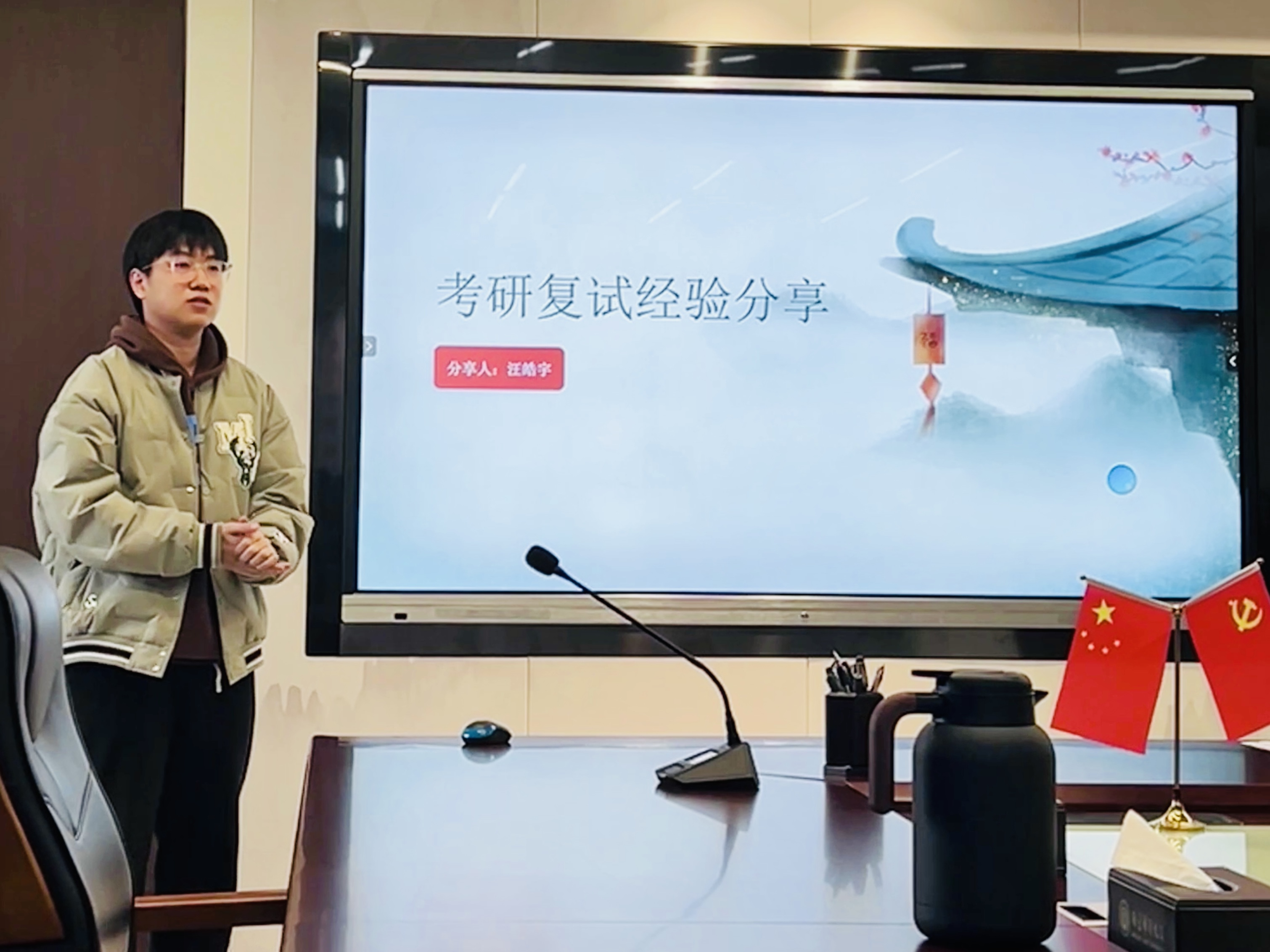 紧接着,成人卡通 研究生会宣传中心干事林洛妤和成人卡通 研究生第二党支部书记汪皓宇分别从“笔试准备、临场态度、面试技巧”和“专业知识、时事热点、逻辑表达”六个方面为研考同学分享经验;与会的学长学姐与学弟学妹进行了交流与讨论。
