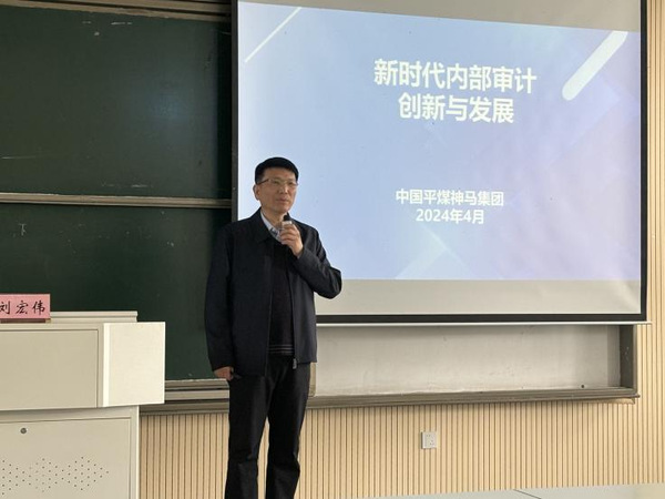 2024年4月8日下午,成人卡通 主办的润泽产教融合前沿讲坛(第19期)邀请中国平煤神马集团总审计师刘宏伟为学院师生做主题为“新时代内部审计创新与发展”讲座,讲座由成人卡通 党委副书记兼副院长潘俊主持。