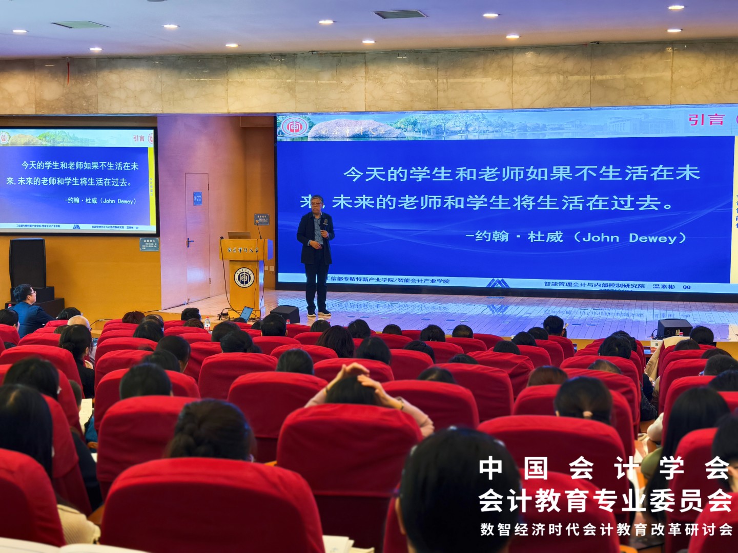 南京大学杨雄胜教授以《数智化:会计底层逻辑的反思》为题,分别从哲学、科学、社会三个层面,讨论了数字化会计发展的底层逻辑,并指出,目前我国的会计教育仍然面临诸多问题,传统的会计信息化已经不能满足现代社会对信息化的需求,会计教育须更加注重理论思维和实践能力的培养,以适应数字化时代的发展。并提出需要从社会学的角度出发理解会计的本质,会计不应仅仅反映经济活动还应反映社会发展,更加注重社会参与和信息互动。