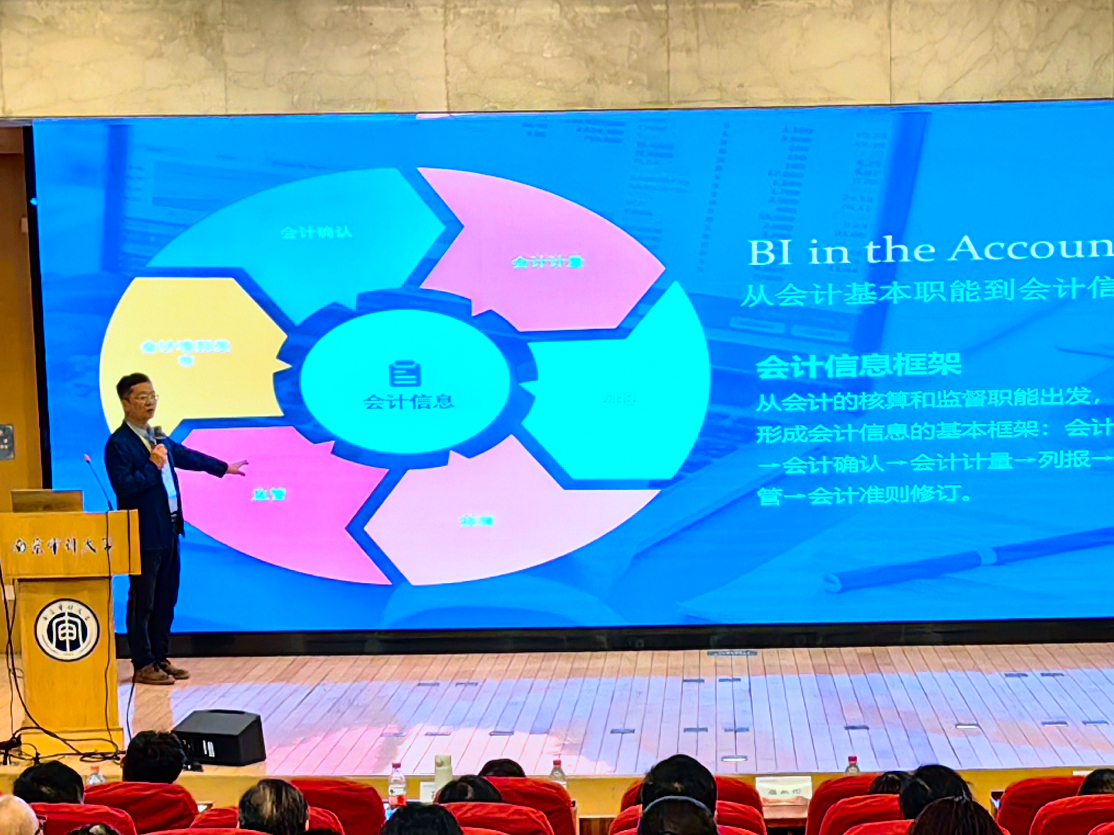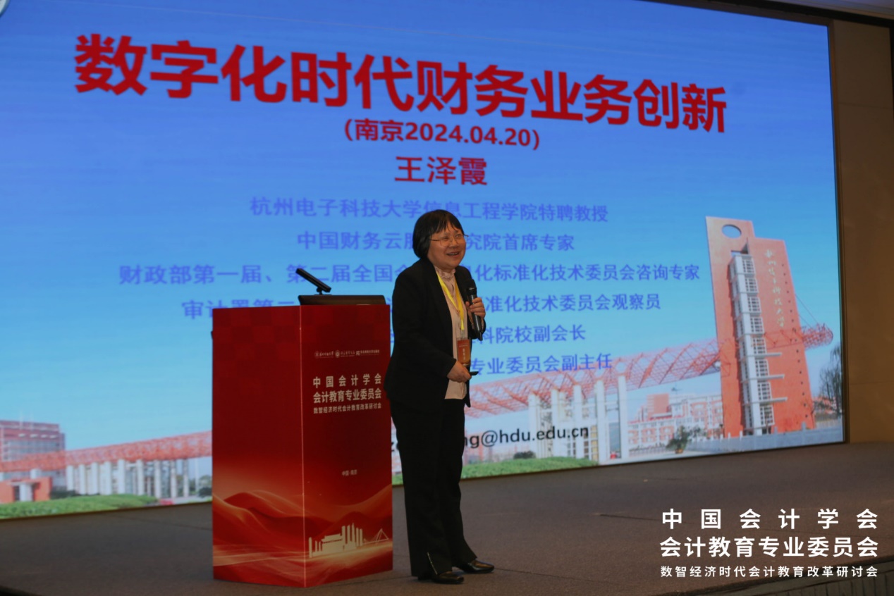 杭州电子科技大学王泽霞教授以《数字化时代财务业务创新》为题,指出数字化时代财务业务创新的关键点在于管理活动中的风险控制,企业可以通过全面预算管理来优化风险控制以确保权益;企业数字化转型带来的新技术也重新定义了数据采集和处理方式,推动了产业生态的巨大变革。提出以“平台+案例”的形式,搭建数智商业全景,培养复合型数智人才。