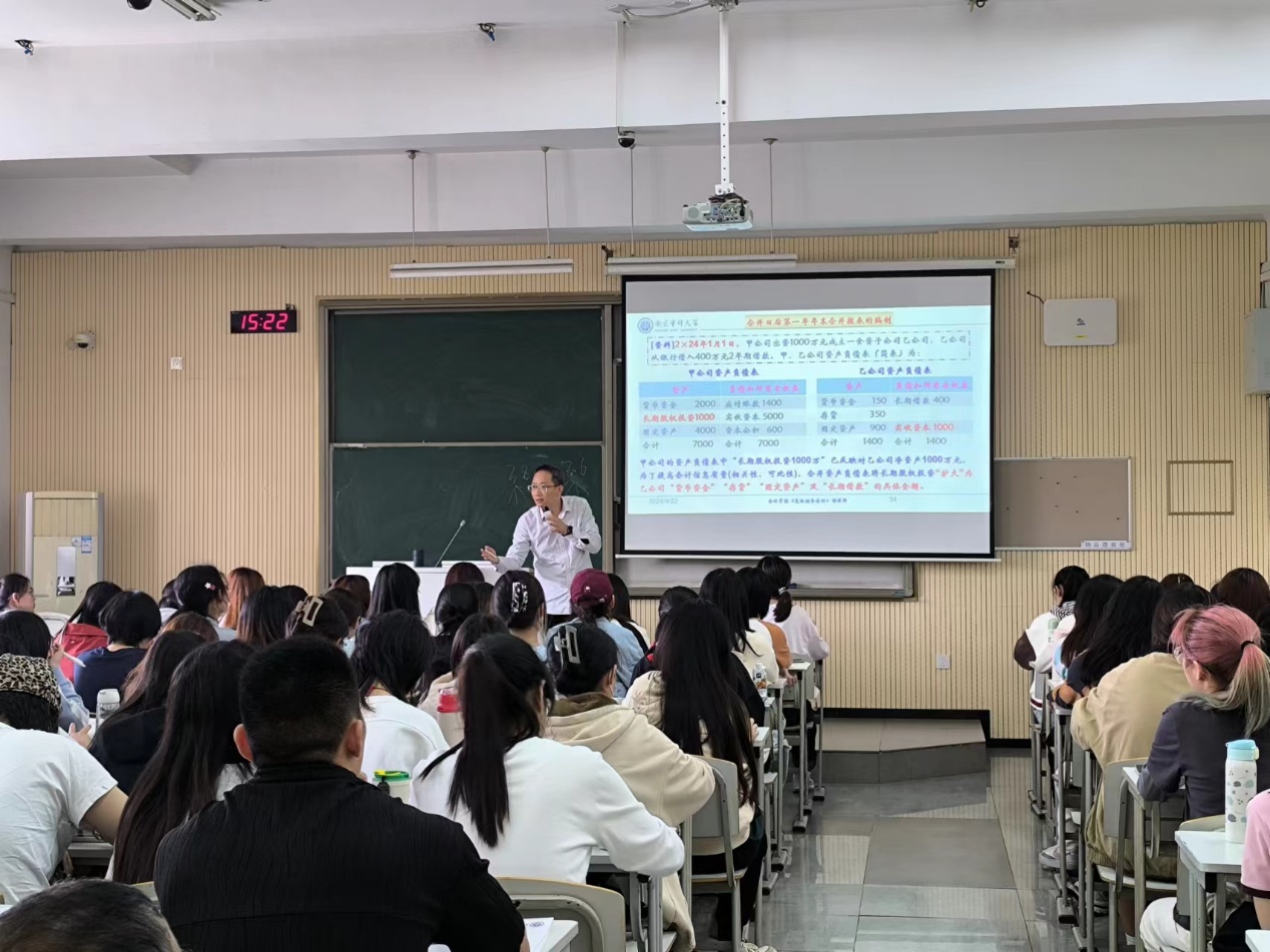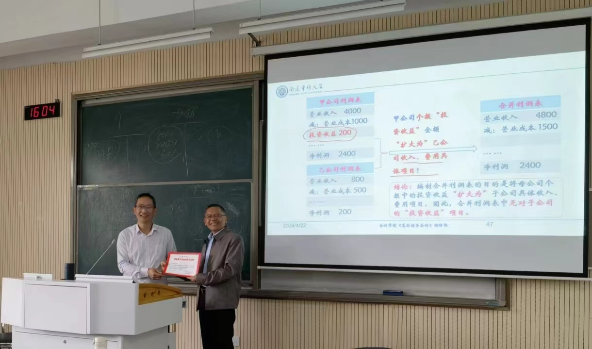 何老师首先详细讲解了编制合并报表的目的是为了提高会计信息质量,编制合并报表的实质是将母公司资产负债中对子公司的长期股权投资“扩大”为子公司资产负债表中资产、负债具体项目和编制合并利润表的实质是将母公司对子公司的投资收益“扩大”为子公司利润表中收入、费用等具体项目。其次,何老师介绍了编制合并报表调整和抵消分录的基本原理及具体过程。何老师老师的授课风格平易近人,说话幽默风趣,课程内容旁征博引,理论和实务相结合,互动丰富,让学生亲自感知,亲身体验,在实际操作中探索、掌握。