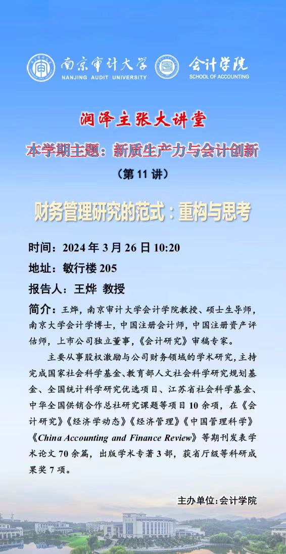 润泽主张大讲堂(第11讲) :王烨——教财务管理研究的范式:重构与思考