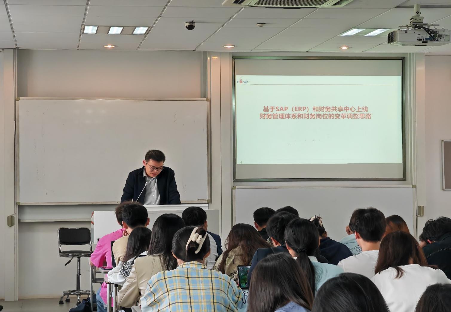 2024年4月23日上午,财务管理课程组邀请校外导师、成人卡通 校友南京晨光集团有限责任公司财务部副部长兼财务共享中心主任韩寅进入教学一线,与课程师生共话“基于SAP(ERP)和财务共享中心上线财务管理体系和财务岗位的变革调整思路”。这是成人卡通 主办的润泽产教融合前沿讲坛(第20期),讲座由成人卡通 马德林教授主持,课程组教师参加了本次研讨交流。