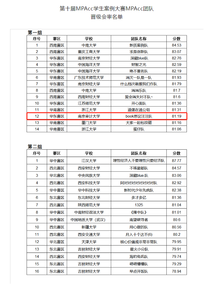 5月28日,全国会计专业学位研究生教育指导委员会公布了第十届MPAcc学生案例大赛MPAcc团队晋级会审名单。成人卡通 MPAcc研究生再创佳绩,由崔秀梅、朱明秀、温素彬老师指导的“book思议汪汪队”以第一组第12名的成绩成功晋级会审阶段。