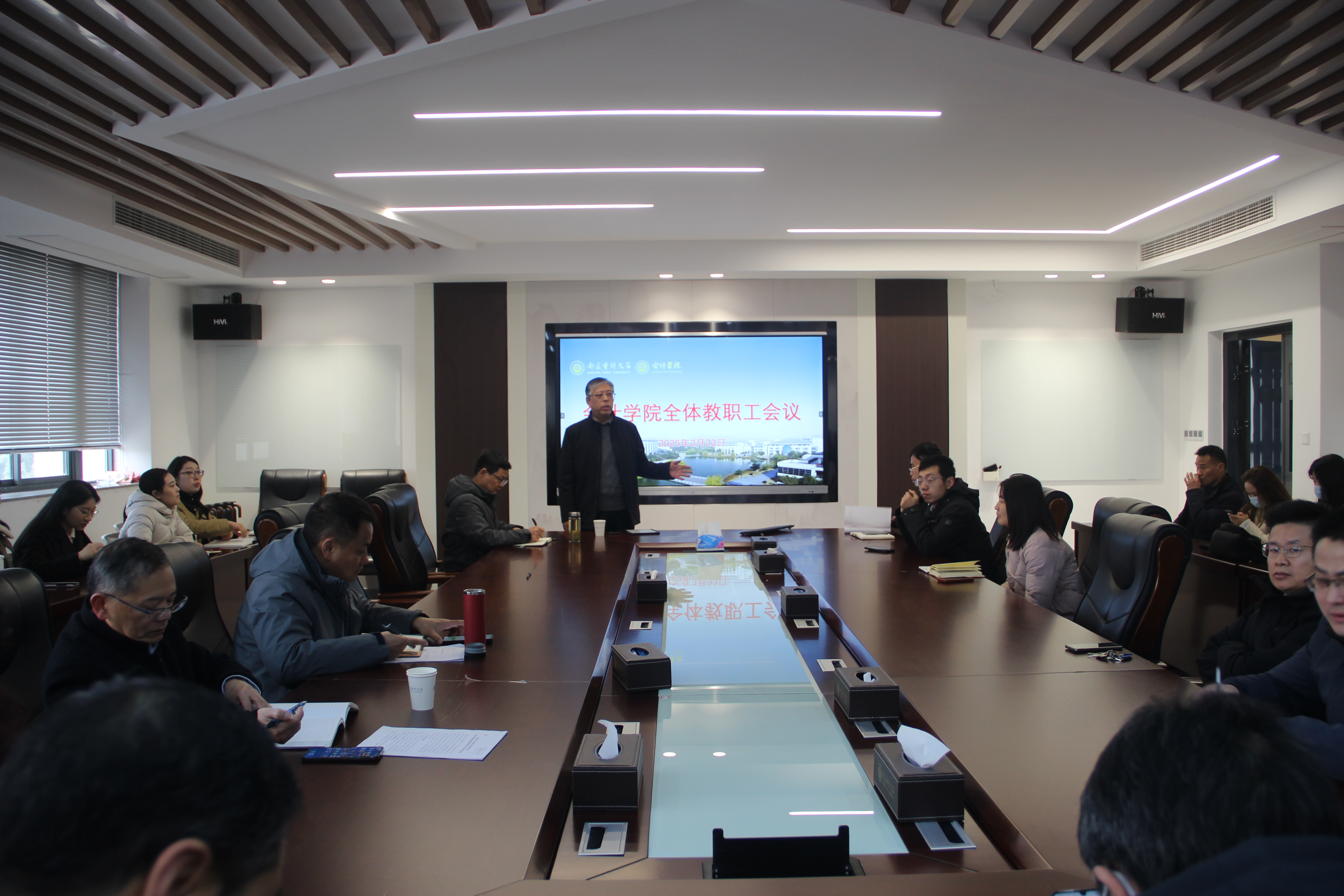 召开全体教职工大会,传达学校干部大会精神、部署2025年重点工作。会议由院长温素彬主持。