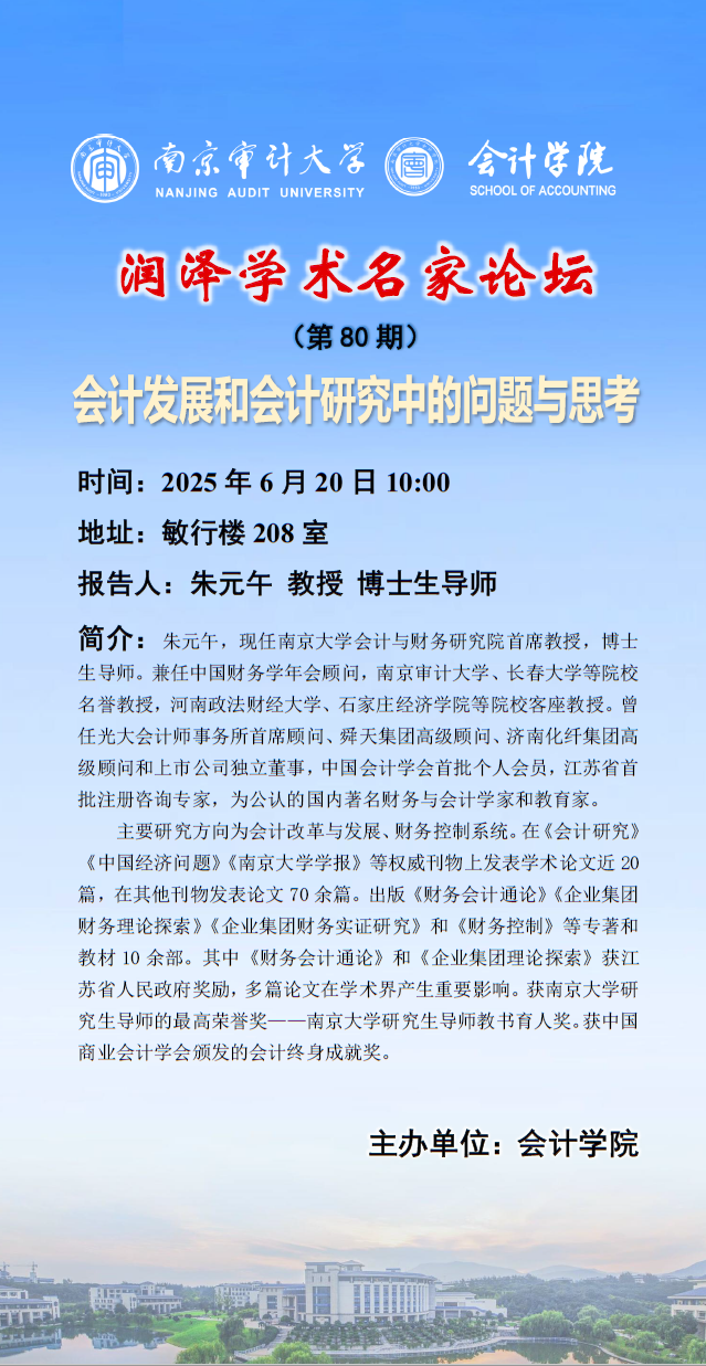 润泽学术名家论坛(第80期):朱元午——会计发展和会计研究中的问题与思考