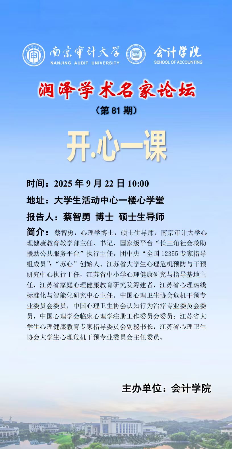 润泽学术名家论坛 (第 81 期) :蔡智勇——开心一课
