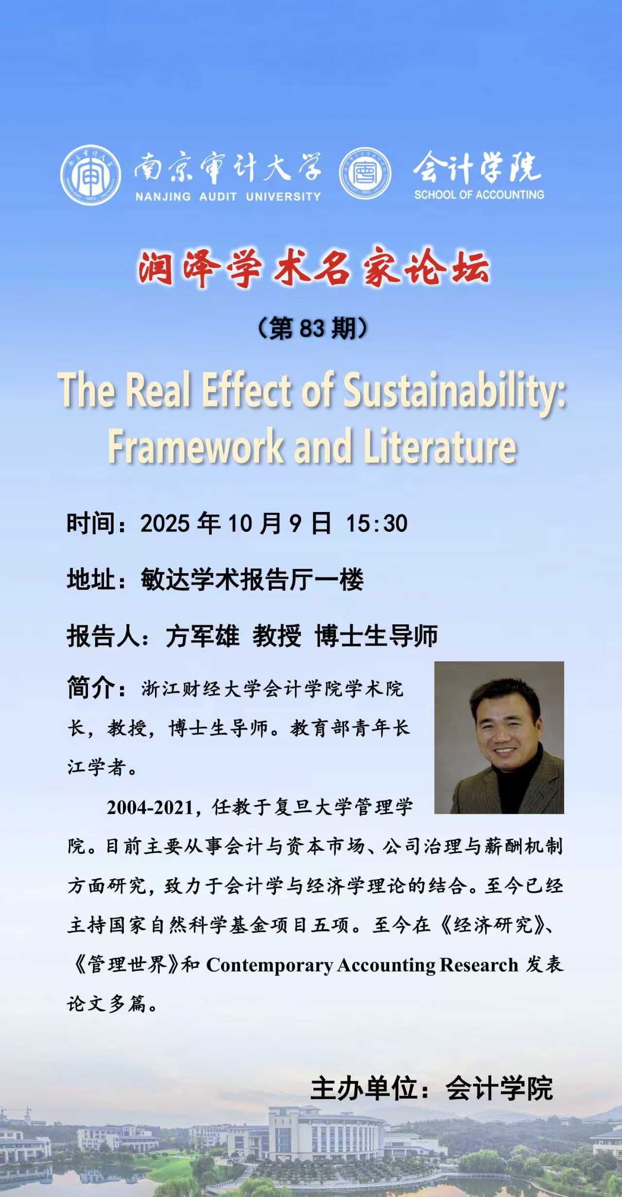 润泽学术名家论坛(第83期):方军雄——The Real Effect of Sustainability: Framework and Literature