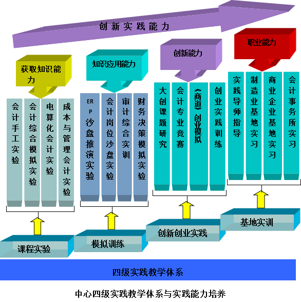 学院坚持以学生创新实践能力培养为主线,以运用理论知识解决实际问题为重点,以培养学生自主学习意识和能力为目标,不断优化实践教学体系,注重综合素质的培养,构建“课程实验、模拟训练、创新创业实践、基地实训”四级实践教学体系。