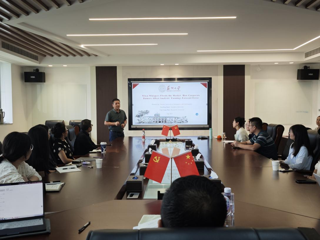在研究方法上,权小锋介绍了团队的实证设计。他们追踪分析师在谣言爆发后的调研行为,发现不同类型的谣言作用差异显著,其中被证实的谣言往往带来更强的正面影响,并进一步扰乱了媒体信息的有效性。