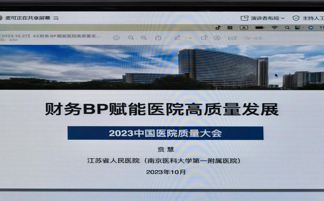 贲慧作“财务BP赋能医院高质量发展”的汇报。她指出,在公立医院高质量发展背景下,财务BP需突破传统职能边界,建立部门间纵横交叉的联系网络,通过业务洞察、价值赋能与运营管控实现真正的业财融合。她强调,现代医院财务BP应全面负责运营分析、预算成本管理等多维事务,为医院价值创造新曲线。贲慧详细介绍了江苏省人民医院的创新实践:探索特色财务BP工作模式,提升科院两级预算管理水平;构建"三库管理模式"与精益绩效考核体系;创新项目成本核算方法,强化运营数据质量;开展学科评估综合分析,引入BPR优化管理流程;建设智慧财务平台,实现数据驱动决策。这些举措有效推动了医院精细化管理和高质量发展。